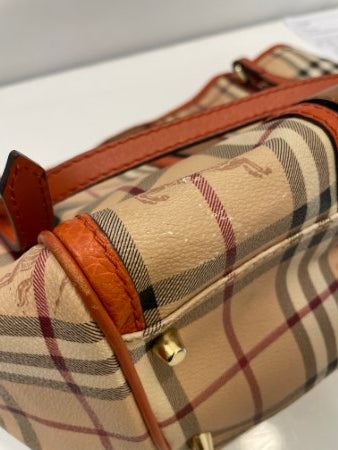 Material: Brown Haymarket Check Coated Canvas with Orange Leather Trim