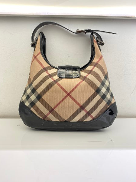 Material: Beige Nova Check Canvas with Black Patent Leather