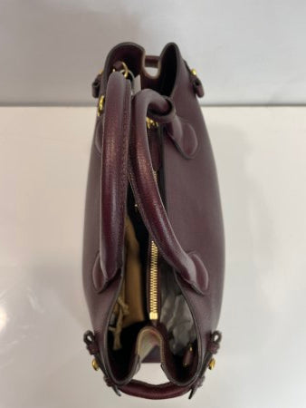 - Material: Burgundy Calfskin Leather with House Check Canvas Trim