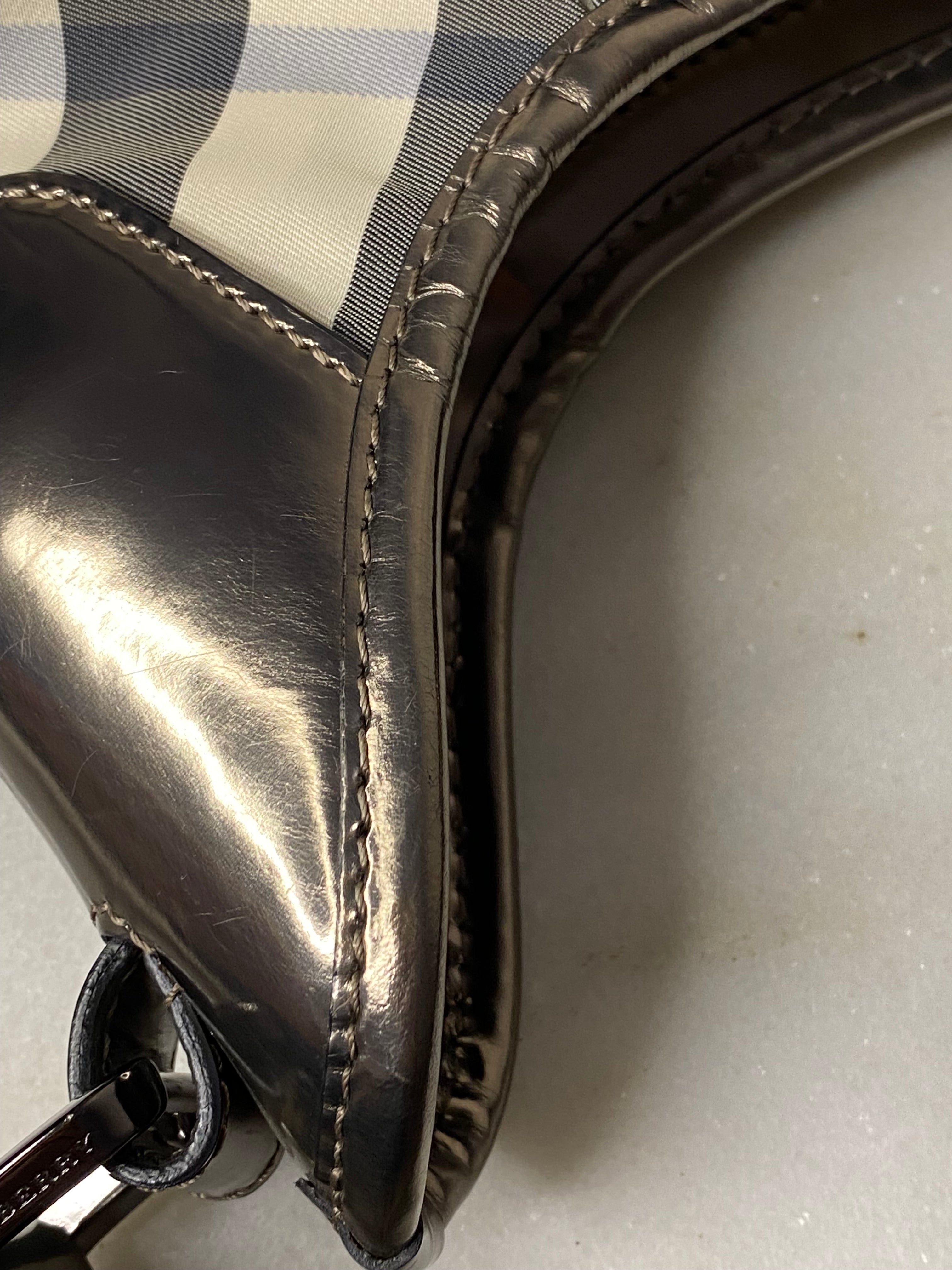 Burberry Metallic Dark Grey Beat Check Shoulder Bag