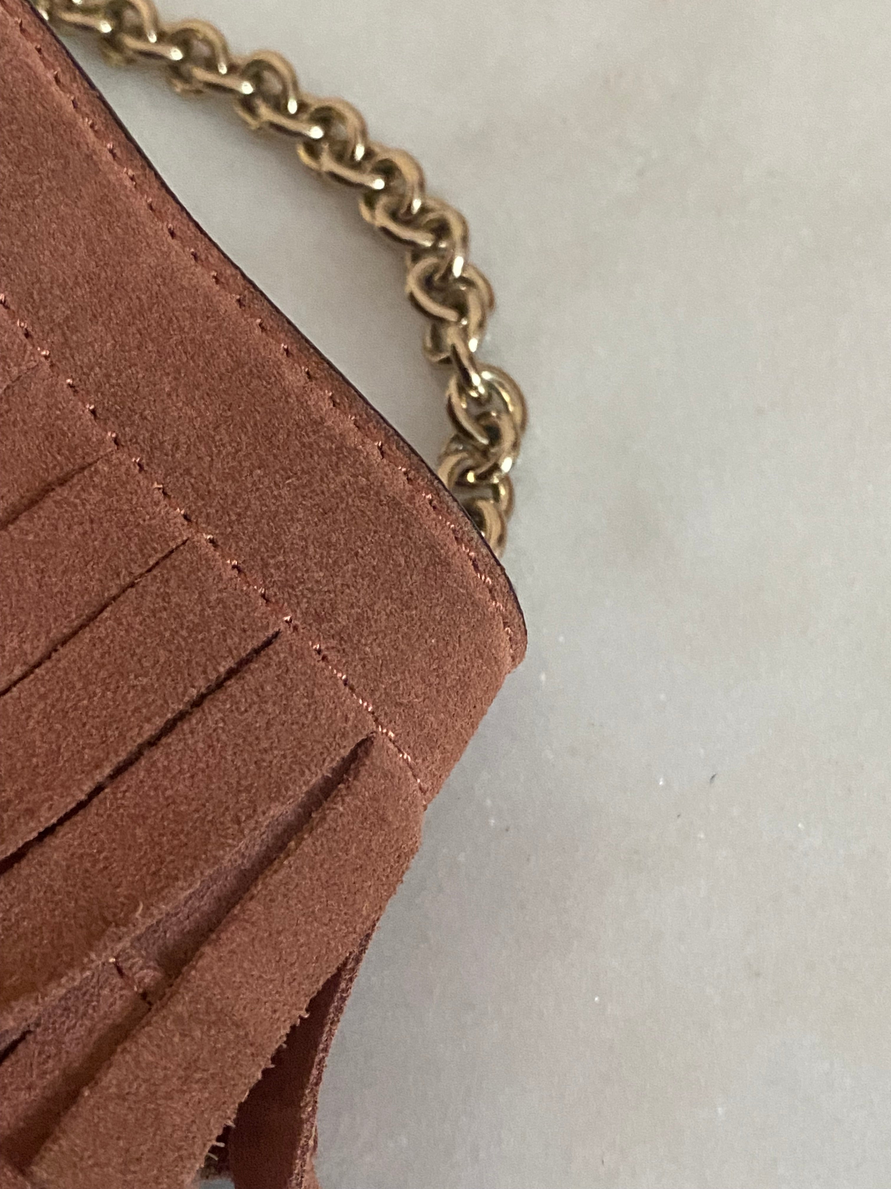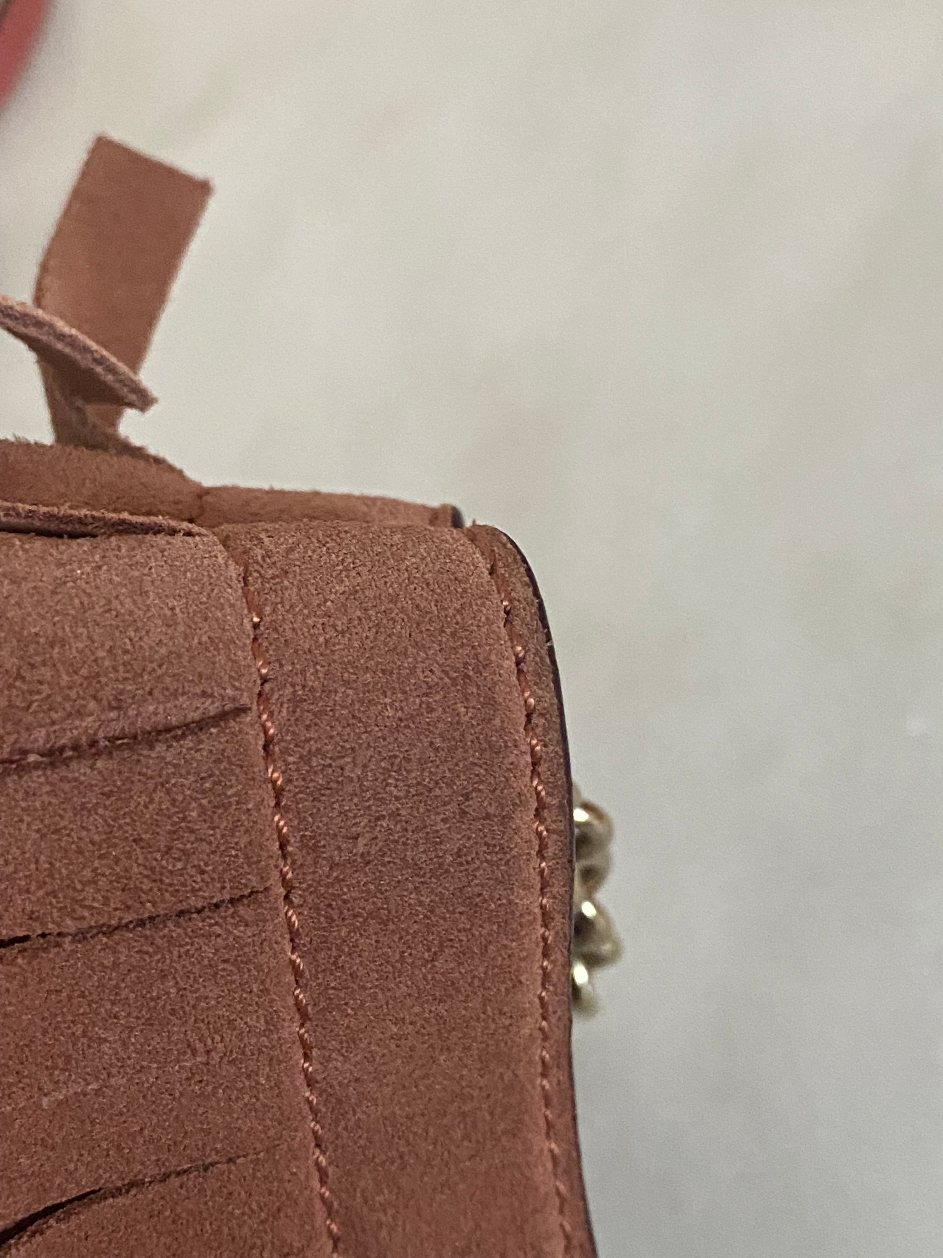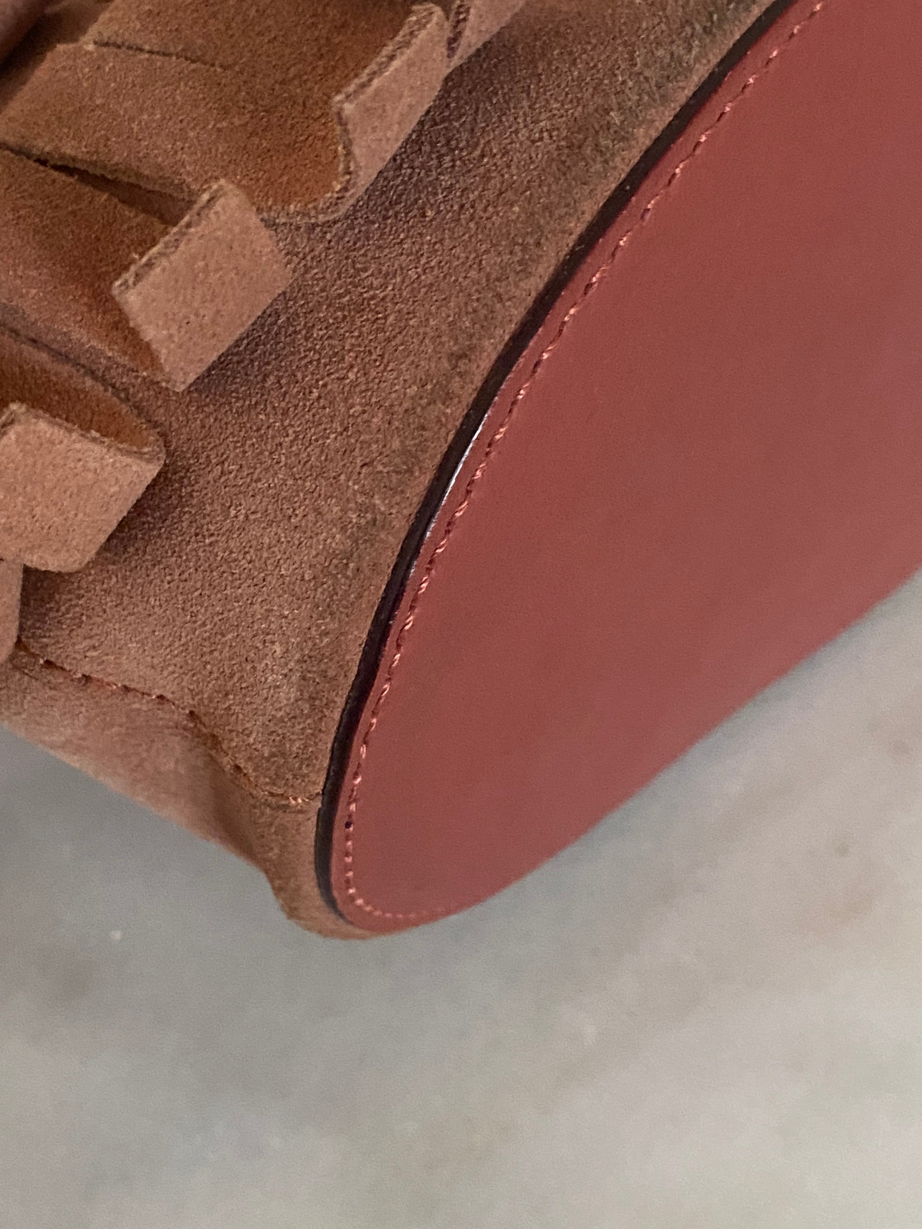 Material: Pink Suede with Leather Trim with Fringe Details