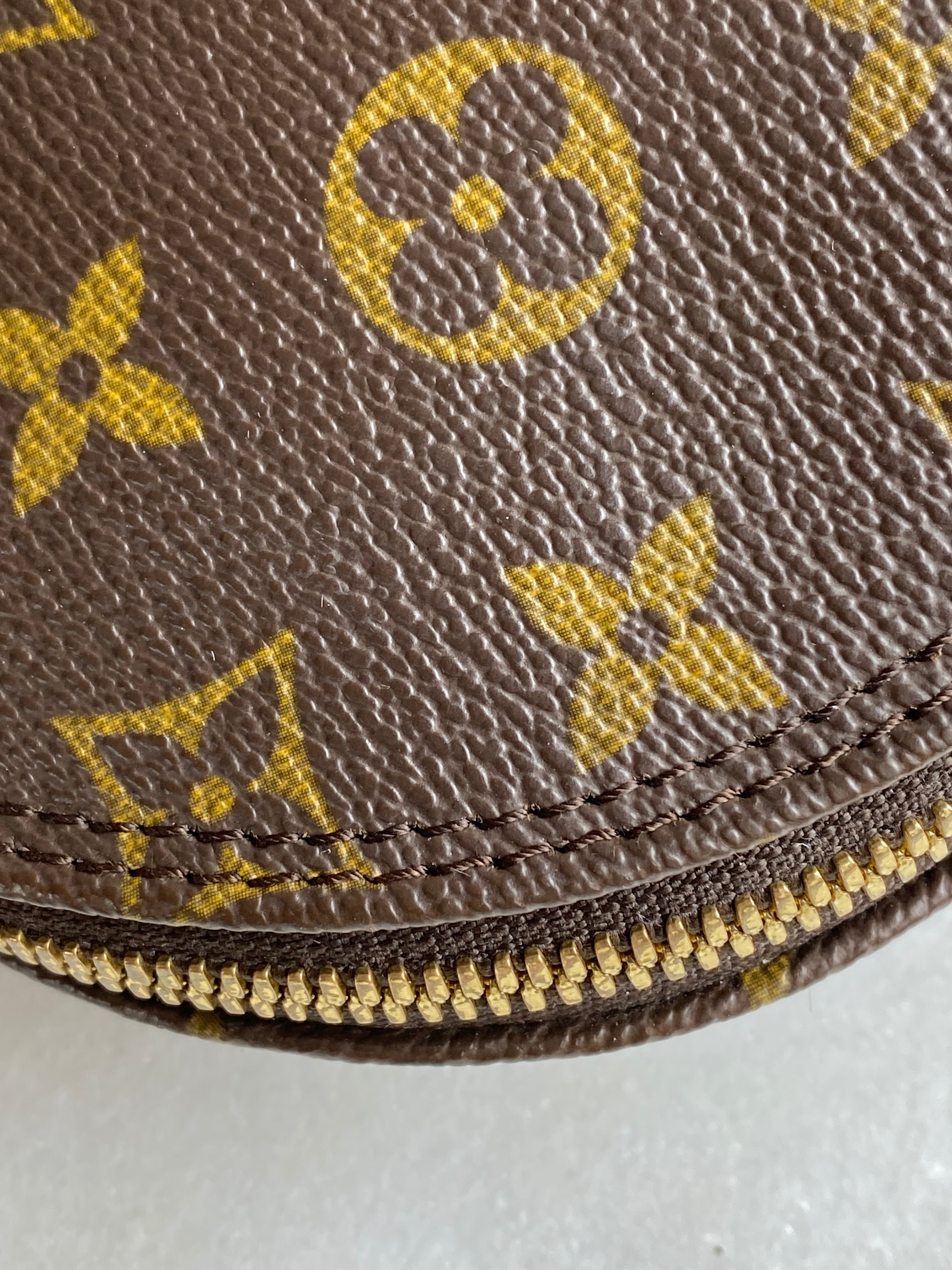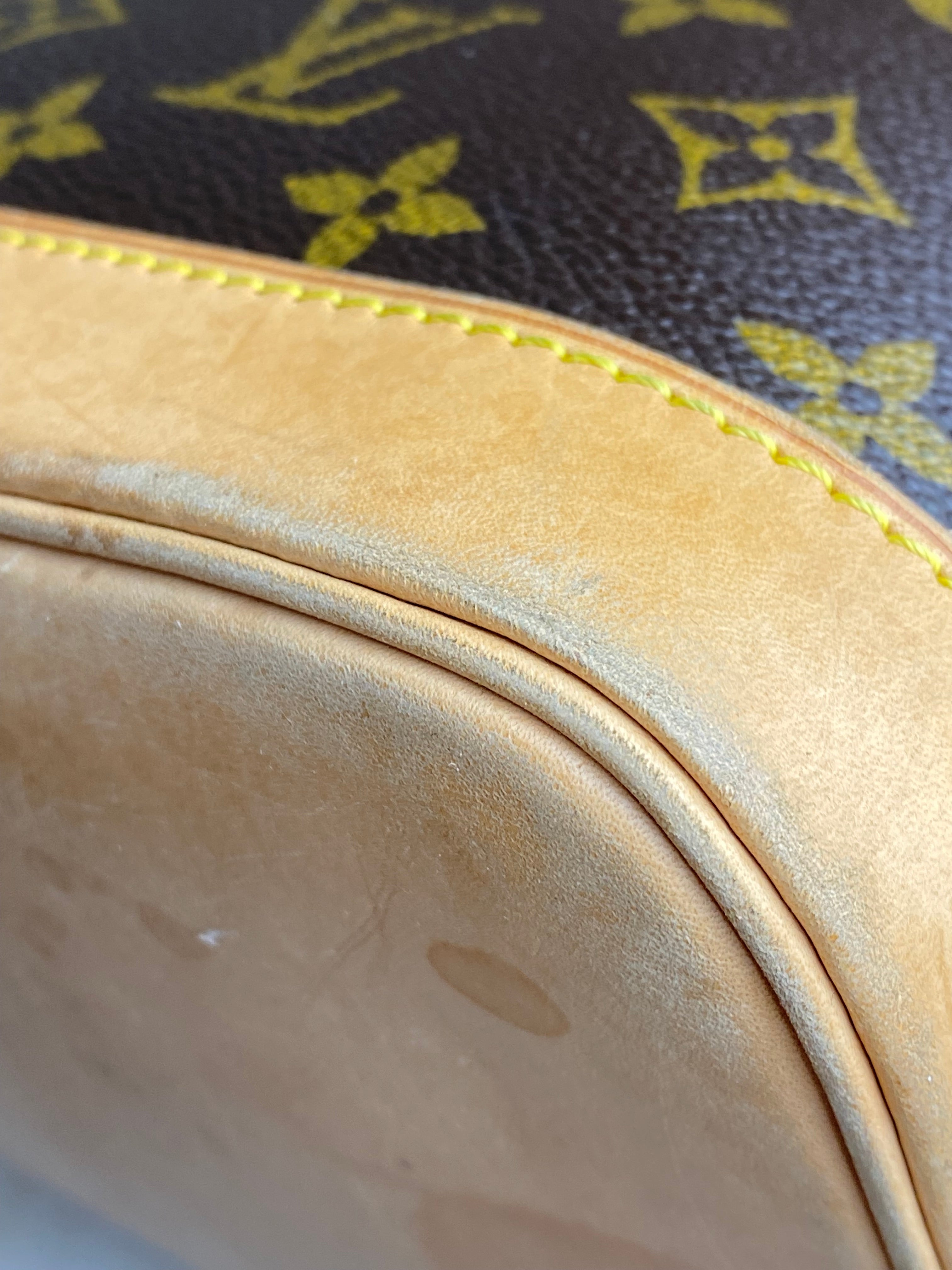 - Material: Monogram Coated Canvas with Natural Cowhide Leather Trim